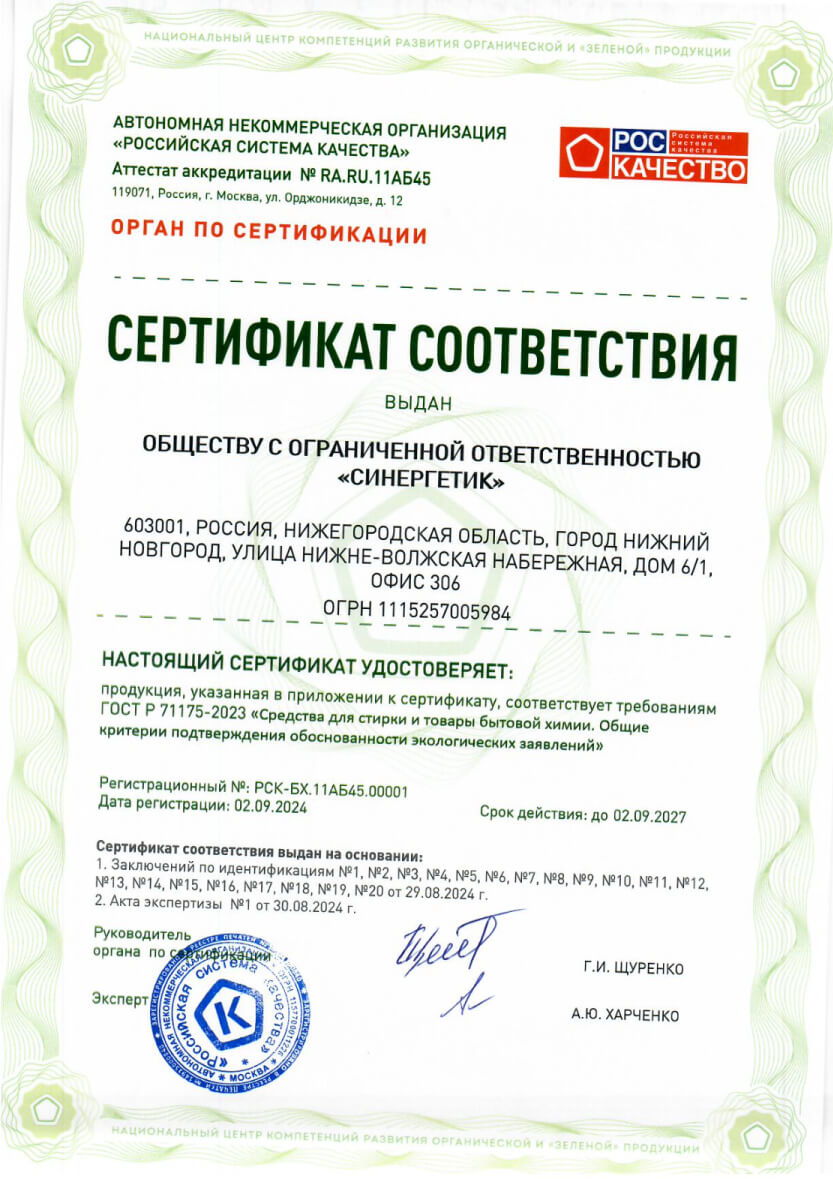 Во-вторых, нет необходимости в дозировке с помощью мерной ложки. Используя стики, вы начнете использовать в 6 раз меньше порошка, чем обычно: например, 1 кг суперконцентрата SYNERGETIC заменяет 6 кг обычного порошка. При этом качество стирки станет лучше — доказано. Высокая эффективность стирального порошка SYNERGETIC подтверждена в Европе (протоколы испытаний № 20.2.05.15 755, № 5 264 745−01, Германия, 2020 г.).